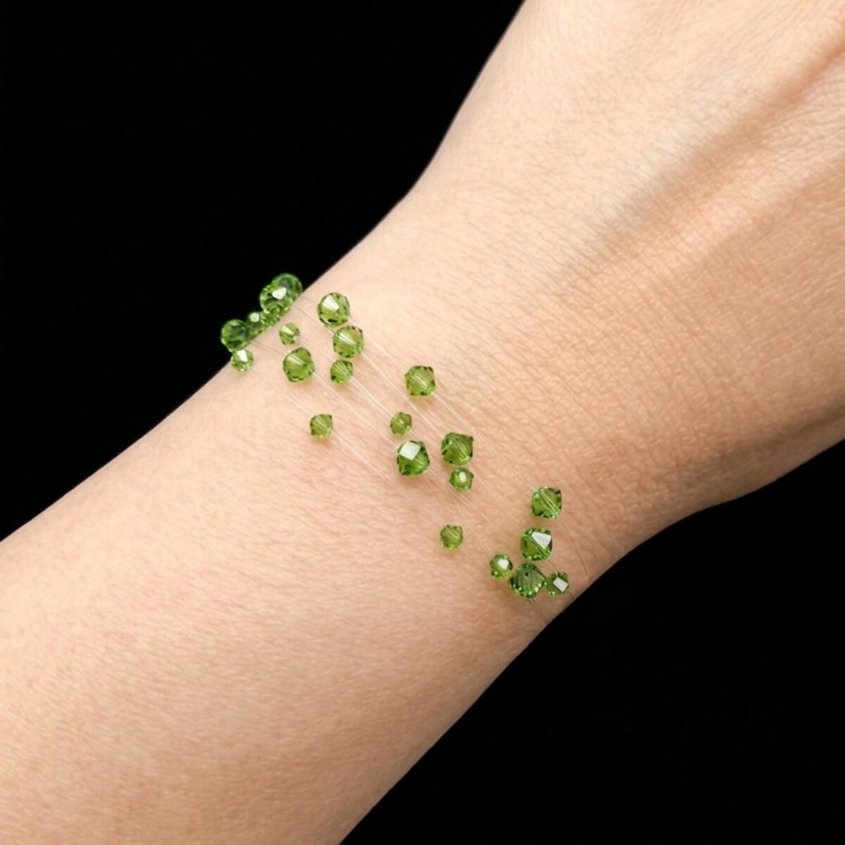 芽吹いたばかりの鮮やかな新緑をイメージした、清涼感あふれるフローティングブレスレットです。まるで初夏の木漏れ日が手首に降り注いでいるかのような、軽やかで瑞々しい輝きをデザインしました。